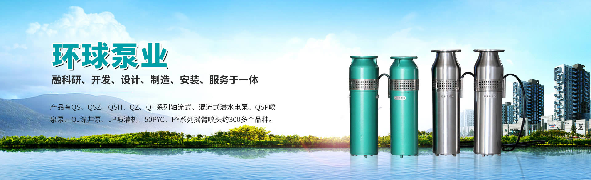 徐州環球泵業有限公司有QS、QSZ、QSH、QZ、QH系列軸流式、混流式潛水電泵,QSP噴泉泵,QJ深井泵,JP噴灌機,50PYC、PY系列搖臂噴頭約300多個品種。 本公司主要致力于節水灌溉、工農業排水、污水處理城市給水領域設備的科研、開發設計、制造及工程的施工安裝和設施運營的全程化服務。自設的大功率潛水電泵測試中心。生產的大口徑(口徑250mm到1200mm)、大流量的潛水泵,在南水北調、水庫等重點工程中廣泛使用。...